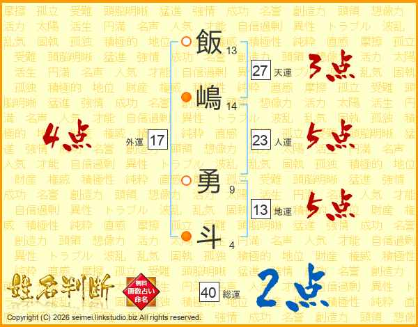 飯嶋勇斗さんの総運は40画の2点!