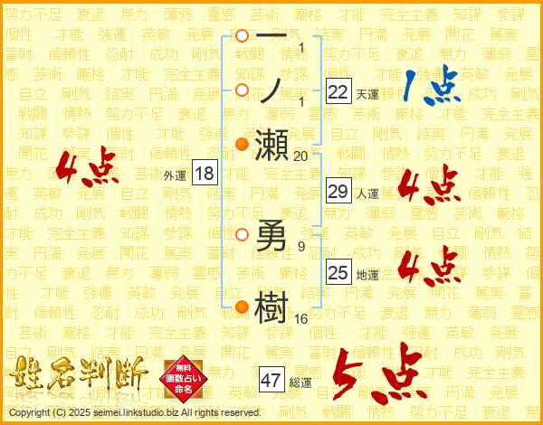 一ノ瀬勇樹さんの総運は47画の5点!