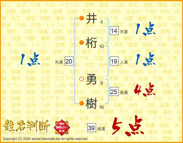 井(4画)桁(10画) 勇(9画)樹(16画)