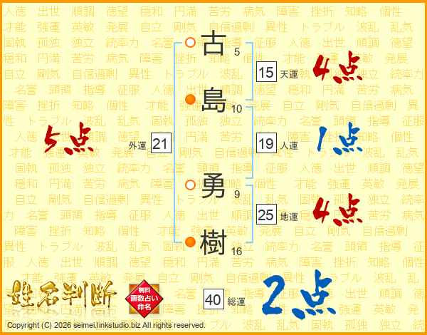 古島勇樹さんの地運は25画の4点!
