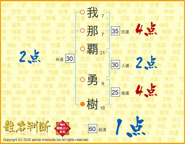 我那覇勇樹さんの地運は25画の4点!