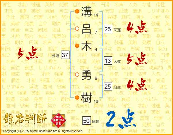 溝(14画)呂(7画)木(4画) 勇(9画)樹(16画)
