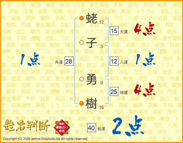 蛯子勇樹さんの総運は40画の2点!