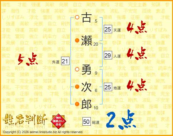 古瀬勇次郎さんの天運は25画の4点!