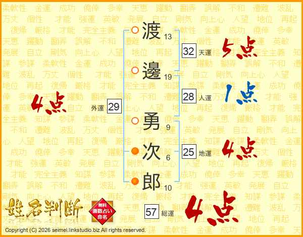 渡邊勇次郎さんの総運は57画の4点!