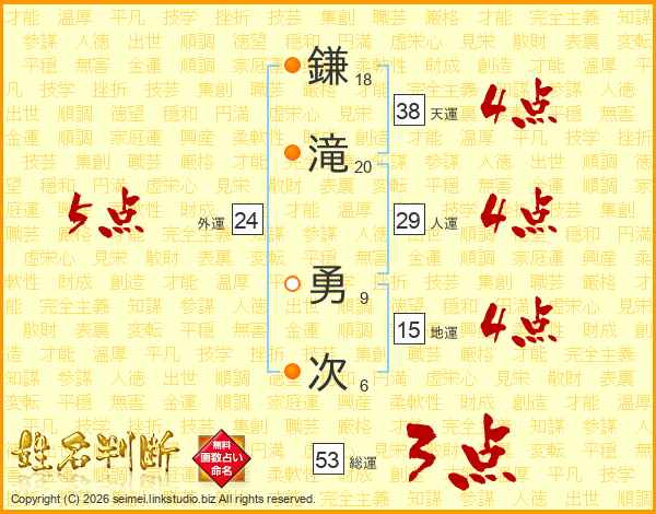 鎌滝勇次さんの天運は38画の4点!