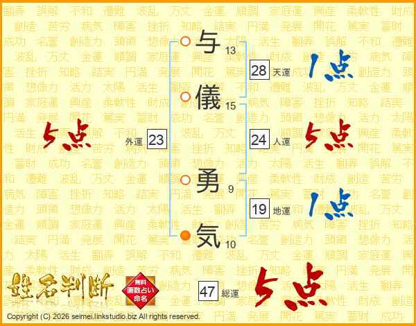 与儀勇気さんの総運は47画の5点!