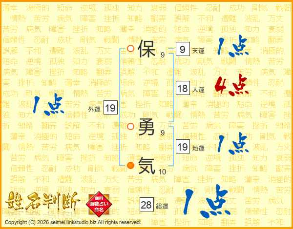 保勇気さんの総運は28画の1点!