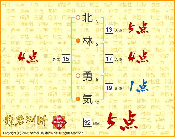 北林勇気さんの総運は32画の5点!