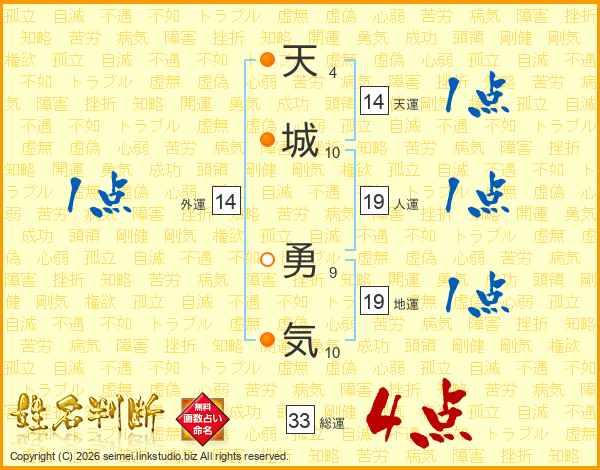 天城勇気さんの総運は33画の4点!