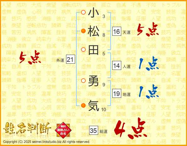 小(3画)松(8画)田(5画) 勇(9画)気(10画)