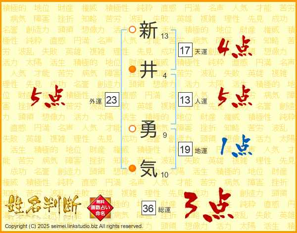 新井勇気さんの総運は36画の3点!