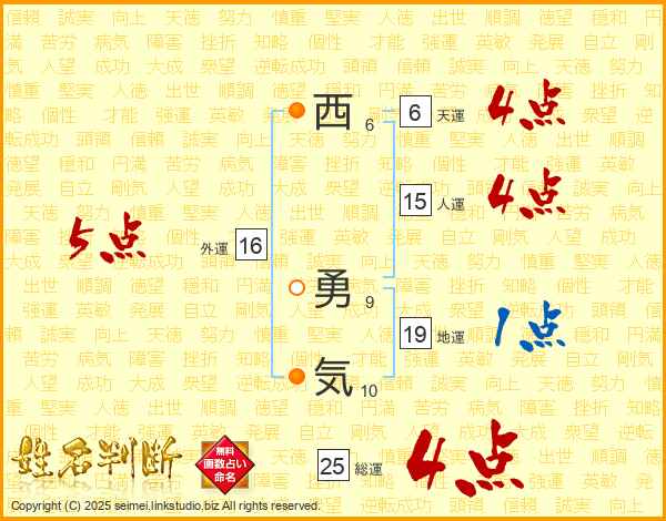 西勇気さんの総運は25画の4点!