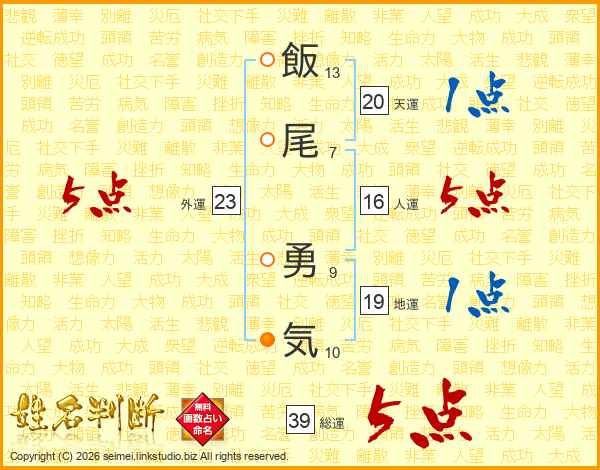 飯尾勇気さんの総運は39画の5点!