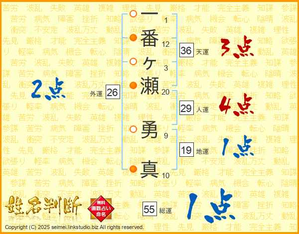 一番ヶ瀬勇真さんの人運は29画の4点!