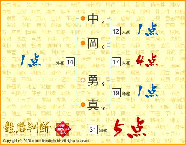 中岡勇真さんの総運は31画の5点!