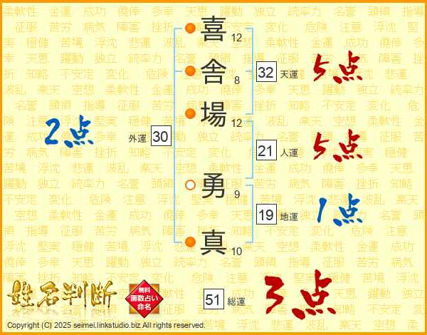 喜舎場勇真さんの総運は51画の3点!