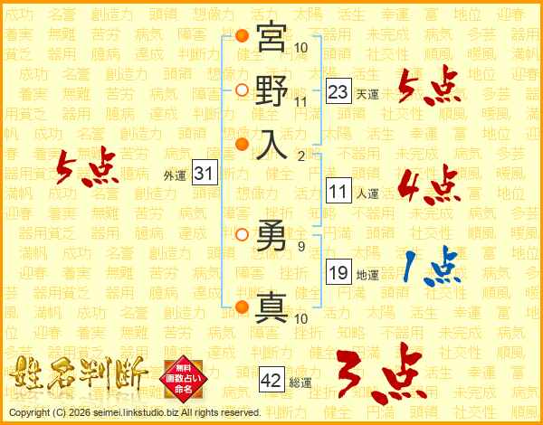 宮野入勇真さんの外運は31画の5点!