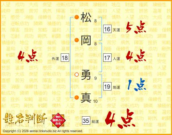 松岡勇真さんの総運は35画の4点!