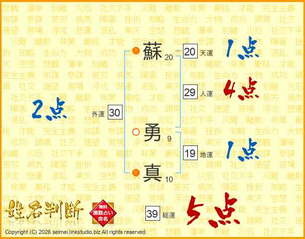 蘇勇真さんの総運は39画の5点!