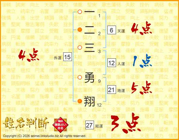 一二三勇翔さんの外運は15画の4点!
