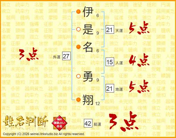 伊是名勇翔さんの総運は42画の3点!