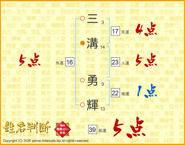 三溝勇輝さんの総運は39画の5点!