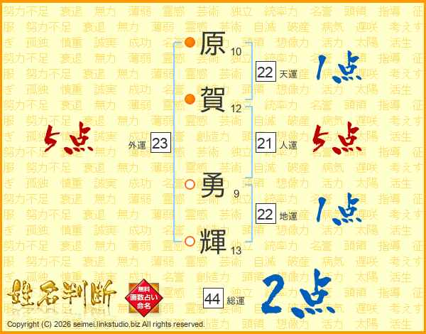 原賀勇輝さんの総運は44画の2点!