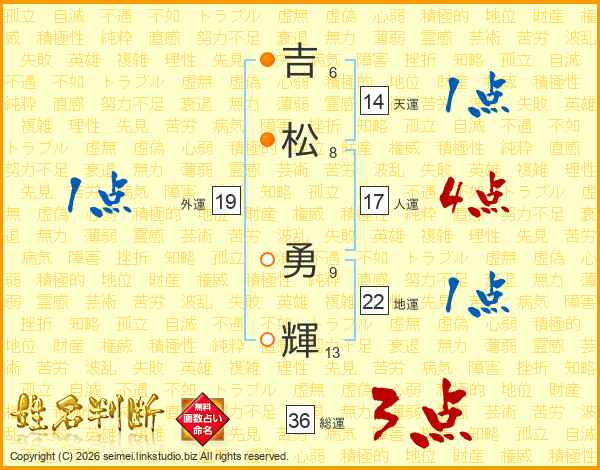 吉松勇輝さんの天運は14画の1点!