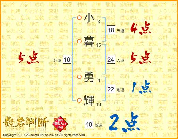 小暮勇輝さんの総運は40画の2点!