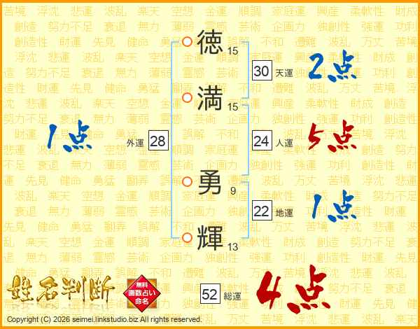 徳満勇輝さんの総運は52画の4点!