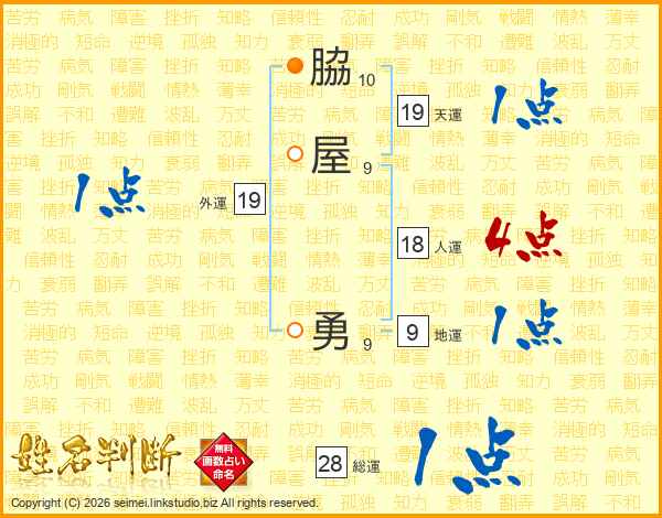 脇屋勇さんの総運は28画の1点!