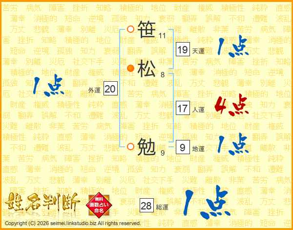 笹松勉さんの総運は28画の1点!