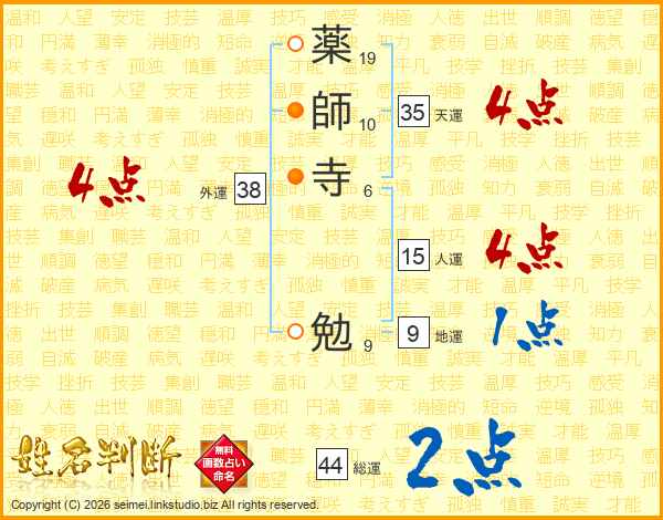薬(19画)師(10画)寺(6画) 勉(9画)