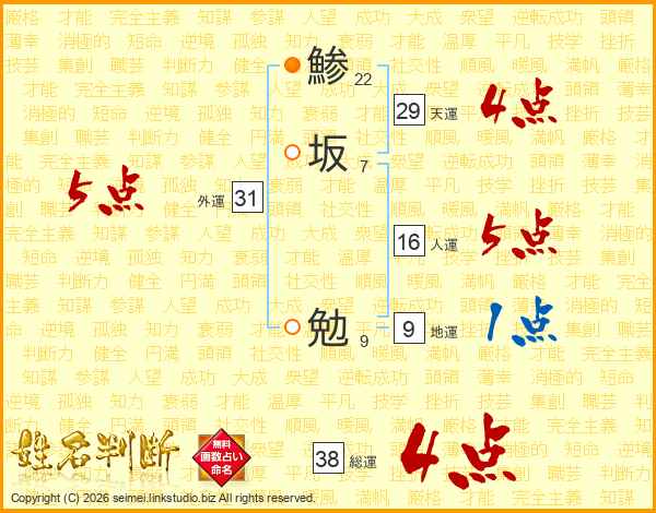鯵坂勉さんの総運は38画の4点!