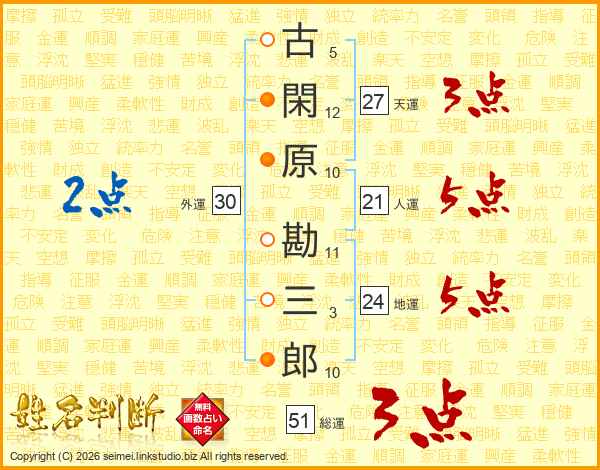 古閑原勘三郎さんの総運は51画の3点!