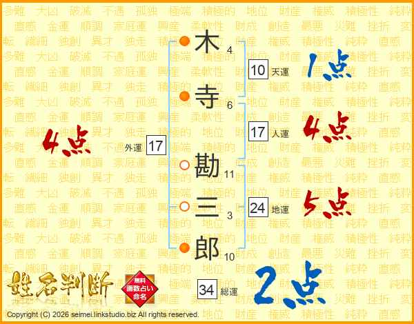 木寺勘三郎さんの総運は34画の2点!