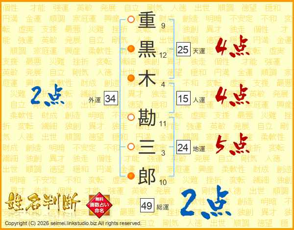 重黒木勘三郎さんの総運は49画の2点!
