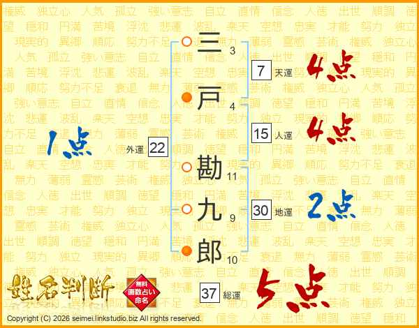 三(3画)戸(4画) 勘(11画)九(9画)郎(10画)