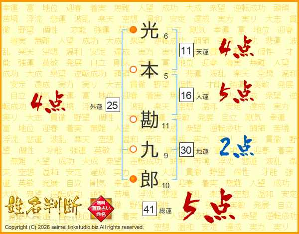光本勘九郎さんの総運は41画の5点!