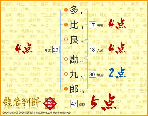 多比良勘九郎さんの総運は47画の5点!