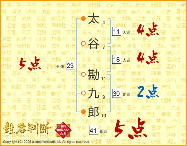 太谷勘九郎さんの総運は41画の5点!