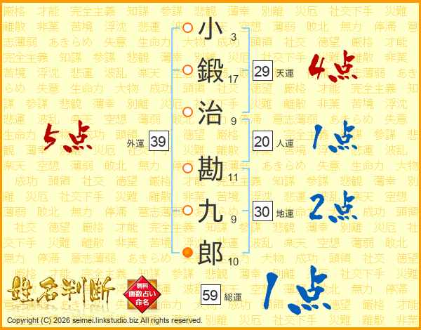 小鍛治勘九郎さんの総運は59画の1点!