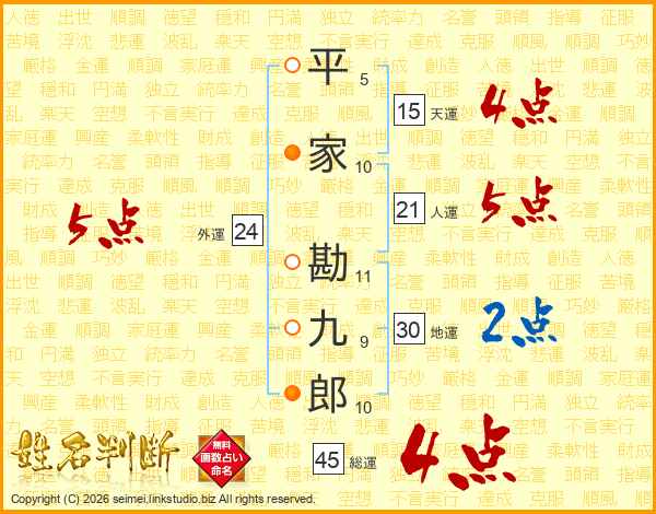 平家勘九郎さんの総運は45画の4点!