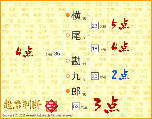 横尾勘九郎さんの総運は53画の3点!