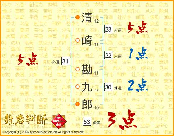 清崎勘九郎さんの外運は31画の5点!