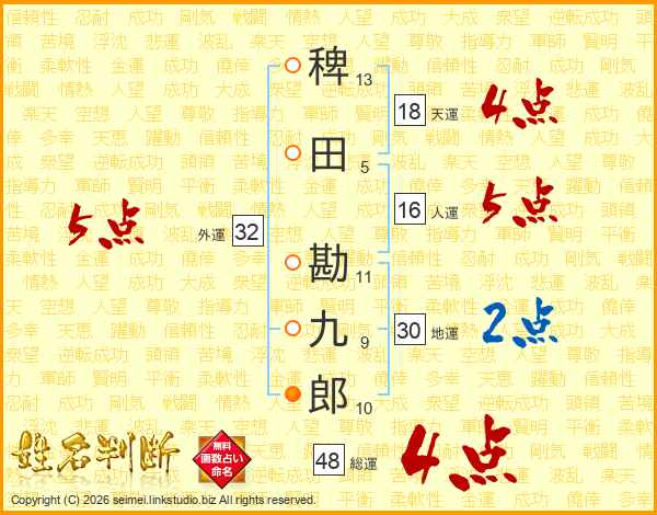 稗田勘九郎さんの外運は32画の5点!