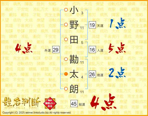 小野田勘太朗さんの総運は45画の4点!