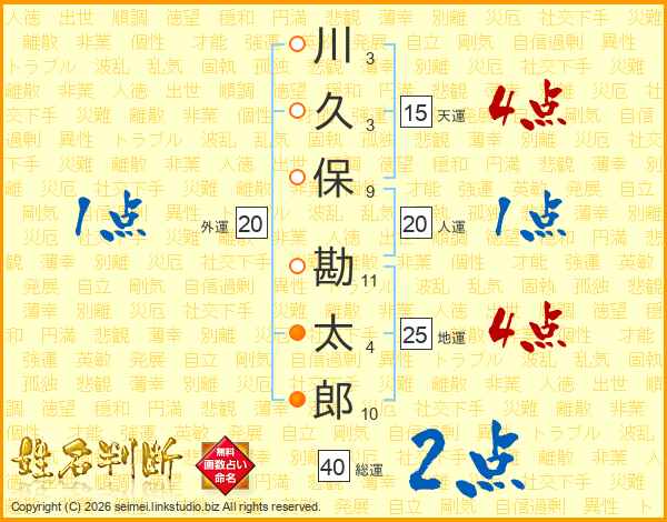 川久保勘太郎さんの総運は40画の2点!