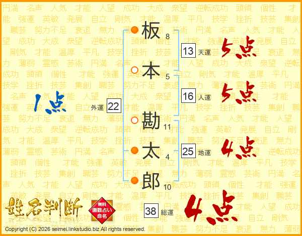 板本勘太郎さんの総運は38画の4点!